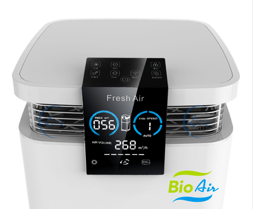 - The BioAir + incorporates real time monitoring and display featuring four colour indicators display to show the ambient air quality.